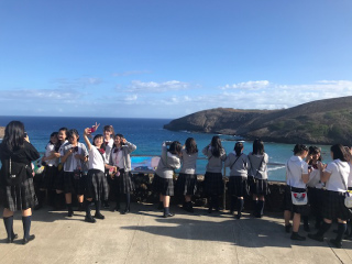 中学校のハワイ修学旅行にて、世界最大級のショッピングモールである「アラモアナショッピングセンター」のステージではチアリーディング部と舞台芸術エレガンスコースの生徒たちが、「カハラモール」ではチアリーディング部がスペシャルパフォーマンスを披露し、観客を魅了しました!「アラモアナショッピングセンター」でのパフォーマンスの様子を動画でご覧ください♪